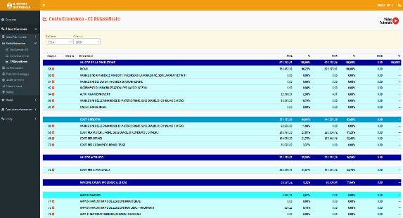 Nel REPORT GESTIONALE si confronta il dato del periodo rispetto all'anno precedente ed al budget dell'esercizio corrente per le principali aree economiche, oltre ad evidenziare con grafici chiari ed intuitivi l'ndamento ziendale, i margini ed i costi aziendali.